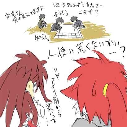 新入生向けの勧誘用看板を作成しに行ってました。 練習はナシなので描く事に集中。 いやぁ久々にベニヤ板見たなぁ・・・ ただ今回は板に直描きではなく、その板サイズの画用紙に描くわけで。 皆は部活紹介の時にやる簡単な劇の練習。 結局オレはチカンに襲われるのかチンピラに絡まれるのか・・・orz 部室で作業していると劇の練習もヒートアップして来たらしく、道場がやかましくなる。 「先輩がナレーションしてくれるかもよ!?20XXX年・・・とか言ってさ!」 「おま、ペケ多すぎやろ・・・!!!」 とかなんとか聞こえてくる。一体いつだよ20XXX年(笑) しかし段々テンションも下がり、オレのところに人が集まって来る。 「何か手伝おか?」 「いや、大丈夫やで」 「・・・線描いてるん?」 「下書きに補助線入れて来たから、これ通りに描こうと思って」 「人によって描き方違うなぁ・・・」 ※キャンパス2つあるので隣でもう一人が看板描いてます 「でっかいのに即描くとかオレ無理やって・・・」 「線描くだけやったら出来るし、手伝うわ」 「そうそう。俺らなんか道具やと思え!!」 「う〜ん・・・じゃあ・・・」 いや、高校の時の方が荒かったですから。マジで。 しかもあの時はベニヤ板8枚に対して20人ぐらいの作業員で規模が違ったしなぁ。 荒さの規模も段違いでしたわけですな(えええ) で、手伝ってもらって補助線完成。 実際に描き始めると手伝う事も出来なくなり、皆帰っていく。 部室の鍵を持つ先輩だけがオレのせいで取り残され・・・ 「よっし今日はこれでいいか!」 上半分下書き終了!! 10時半から描き始めて、終了した時点での気分は12時だったのに。 実際は2時でした(え) 熱中し過ぎです・・・! 先輩待たせてすみませんでした・・・orz そして明日はカラオケ行っちゃいます看板放置ですみません・・・!!! PR TrackbacksTRACKBACK URL : CommentsComment Form |