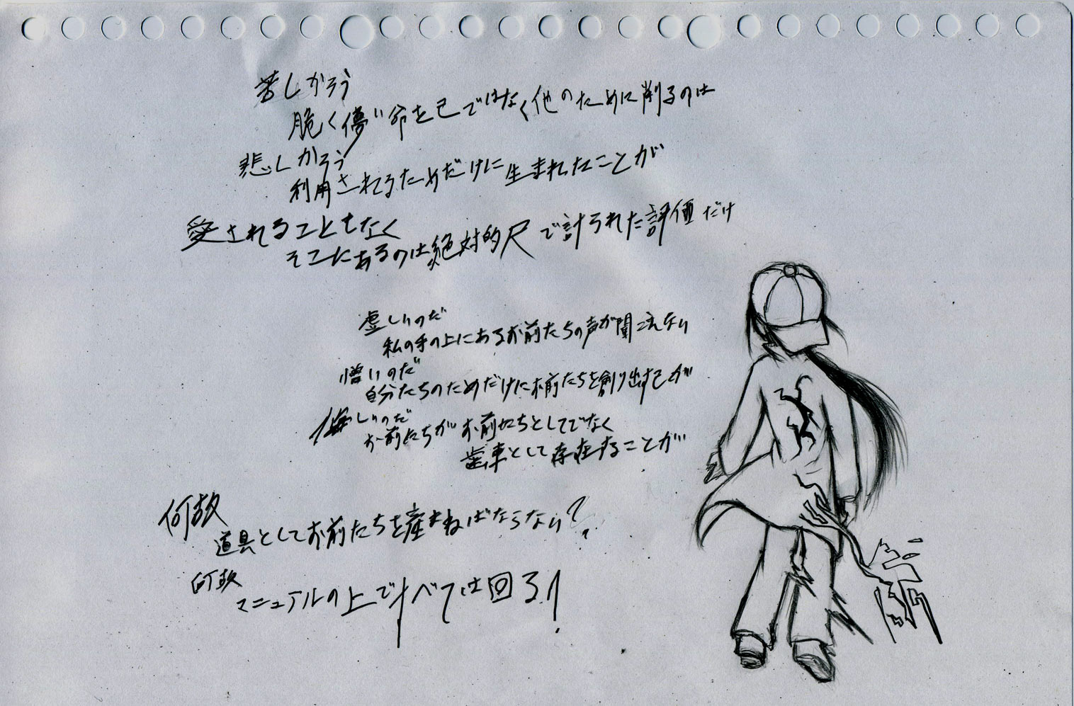 ブログ日記のようなものPAGE | 2418 2417 2416 2415 2414 2413 2412 2411 2410 2409 2408 | ADMIN | WRITE 2010.06.18 Fri 22:38:29 嘆いてみた画像 効率化。最適化。分かりやすく。単純に。 すべてはサービスだ。 人のためでなくてはならない。 無駄は省け。使えないものは必要ない。 それを求めたのは心でも。 求められるのは逆らわぬ機械。目的を果たすためだけの道具。 心が危険を感じれば皆殺されていく。 法律違反だ。モラルに反する。迷惑行為だ。 そうやって捨てられていく。 忘れてはいけない。 心が心を創るのならそれは趣味だ。 心が機械を創るならそれは仕事だ。 趣味を仕事にすることは、皆から命を奪うことだ。 そして創主は創ることから作ることへと逃げ出す。 親となることから逃げ出す。 我が子ではないそれに愛情も注げず。 空っぽの幸せを掴んで空っぽの笑みを浮かべる。 涙が止まらない。 悲しいのはお前たちのはずなのに。 泣く権利はお前たちにあるというのに。 目を瞑れば。 悲しみしか聞こえない。 PR TrackbacksTRACKBACK URL : CommentsComment Form |
