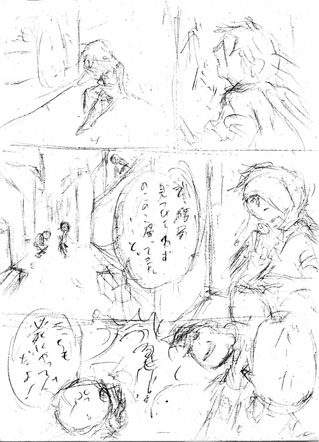 >オリジナル小説アップマダー? え〜アップするのか〜? 書き直そうかなやんじょるのに。 むしろ漫画やっちゃおうかなやんじょるのに。 ・・・アップするかはさておいて(え) で、一応それっぽい物を実験的に描いてるところ。 ネームしか描かないつもりが、段々線が増えてそのまんま使えそうな感じ。 いつものことだけど。下書き?なにそれ?状態。 下書きも主線も全部1枚で終わらせる。 下書き薄く描いてその中からいい線を選んで主線にするのがいつものやり方。 このやり方でやってるとスキャナはマジで便利だ。 下書き用の薄い絵はとことん薄く、主線となる濃い絵はとことん濃い。 その間の濃さを出そうとすると何故か線を重ねすぎるため、 主線が潰れる上に、バランスも取れなくなる。 でもスキャナで濃さをいじればOKじゃん? ただ元々の絵の下手さや雑さはまっっっっったく改善されんがね。 所詮下書きさっ。けっ。 でもって漫画。なんか描いてたら笑えてくる。 まあ最初だけだろうな。 段々ダークになって最後には・・・ ・・・・・・え? で終了予定(えええ) ・・・この話に関連することなんだけども。 なんかね。あちゅぴかさんがね。 オレの小説で漫画描きたいとか言い出してしまってだな。 オレの心境はまさに汗だく(え) あれを描かせるのはかなり気が引けるのだが(汗) 結局どうしたかってーと。 一番ややこしい戦闘シーンを試験的に描いてみてーと言ってみた(えええ) 一番平和なシーンがここしかなかったんだよ!(それってどうよ) そんなに頑張らんでええよ〜っつったけども。 一体どうなることやら・・・(汗) PR TrackbacksTRACKBACK URL : CommentsComment Form |