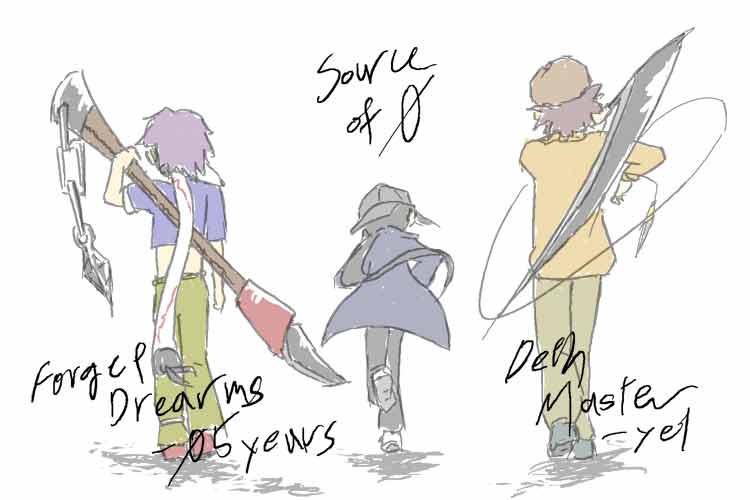 まぁどのみちやりますよって話。でもまた部活が...orz 気合い入れていきましょう。 半端は嫌です。何より他人が頑張ってるのに一人ぼさっとしてるのは嫌です。 自分の作品ならまだしも、人様の作品なんだから。全力で。うむ。 半端と言えば気持ちも半端だったわけですが。 スッキリしているようでしていない。 自分に納得しているようでしていない。 なんかこう、引っかかって引っかかって。 ・・・だったんだけども。自問自答してたら原因発覚。 というのも、人に言ったことを自分に言ってみただけなんだけども。 オレの場合、口から出る言葉にせよメッセにせよ。 大抵その場ですぐ外に吐き出した言葉なんてものは嘘八百で。 改めて考えれば考えるほど「ここはこう言うべきだっただろうに」があった。 だから自分の吐き出した言葉を後々自分で考え直して、 それに納得するなんてことはあり得なかった。 でも今回は珍しく、吐き出した言葉に後々納得してしまった。 何が違ったのか。あくまで自分の意見だったから? それまでの話の流れに流されるのではなく、話を聞いて自分の意見を言ったから? 「あ〜そうやね」だなんて言わず。 「それってこうなんちゃう?」と、勝手な解釈なのに言い続けて。 もう遠慮なく。否定されること前提で。 でもそれに後々納得した自分がいることを思えば、 がむしゃらでも筋の通る話が出来たことに、自分で驚くわけで。 その時話したことと、今までの自分の行動を照らし合わせると・・・ 事実と可能性に対する見方は時間的問題も含まれる、ということかもしれない。 これまでの解釈は・・・ 確かに可能性が0でない限り、それを実現する方法は存在するが、 0に限りなく近いこと自体は事実であり、それを常識の範囲で「できる」というには あまりにも遠すぎる、というもの。 でもそれは現状の話であって、意志の持ち方の話じゃなかった。 というのも・・・ 可能性を信じて行動する行為と、事実を現実として認めて何もしない行為と。 これはあまりにも真逆の行為になってしまう。 じゃあそれを自分に当てはめたら、自分はどんな行為をして来た? 確かに僅かな可能性を信じて、何かを求めていた時期もあった。 逆に事実は事実、諦めの範疇で出て来た答えを決行しようとしたこともあった。 でもその時自分は納得しなかった。自分が諦めていることを知っていたから? じゃあ何だろう。 自分は諦めたくなかったのかもしれない。 今は確かにこうだけど、方法がないわけじゃない。 どこかでそう思っていて、途中での妥協を否定していたのかもしれない。 皆同じじゃない。同じようなことを出来るわけじゃないし、考え方も違う。 それは分かる。自分が他人になれないことも分かってる。 でも、だからって諦める諦めないも一緒なんだろうか? 「自分はあの人じゃないんだから、あの人と同じことはできない」 確かにそうかもしれない。でもその可能性が0だと誰が決めたんだろう? そこで諦めて何もしない自分がいるのか。 完全に同じことが出来なくても目指そうとするのか。 自分ならどうするだろう?自問自答。 「それがこの世に存在している事実なら、それを実現する方法があるということ」 「新しいものが作れなくとも、それを目指すことは出来るはず」 「何か方法はあるはず」 その考え方に従って一番オレの中で大きな位置を占めている代表的具体例。 それは、どうしようもなく素晴らしい絵。 確かにそれを描く技術は素晴らしい。でも現実に存在しているのなら。 寸分の狂いもなくマネすればいいんだろう? パソコンで描くものなんかは特に。 グラデーションを描くにしても、ツールがなくったって1ドットずつ描けばいい。 時間の問題だけで、それが出来ないわけじゃない。 想像した作業量に先にゲンナリしてしまっているだけ。 不可能じゃない。出来る。 絵柄だってパーツの1つ1つの比率、主線の太さ、遠近の出し方、 特徴的な細部の描き方、塗りの程度、構図・・・ 何枚もある絵を総合的に評価することは難しいけど、1枚だけなら分かりやすいはず。 この絵のこの部分はこうなってる。こうなってる。 出来るはず。 出来るということは分かってる。ただしていないんだ。 でもしないなら出来ないことと同じ。 現実に実現出来ていないのなら、テストの結果と同じ。 「先生、分かってるんです!これは自力で解けます!」 「でも実際のテストの結果は変えられないだろう」 そう言われても仕方がない。それが事実となってしまったのだから。 残さなきゃ意味がない。やらなきゃ意味がない。 それが考えとして実現可能だとしても、実現しなければ意味がない。 しようとしなきゃ意味がない。 1つ目指す形があるとして、それを実現しようとする。 オレならどうするだろう? 実現できる方法はある。それをしようとしなきゃ意味がない。 実際やってみる。でも、結局出来ない。完全な形には辿り着けない。 昔の自分は・・・ 数学も物理も、考え