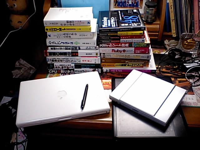 元々訂正指示のあった画像だから、別に作業は増えないだろうけど。 これ以上の命令違反は却下だな。訂正なんかいくらでも入れられるし。うむ。 さて。親の誘惑で本屋へ(こら) リファレンスないかな〜・・・と思ったら案の定ない。 学校で探した方が確実な気がして来た・・・ で、前に買ったデザイン系の本を発見。 シリーズなんだけど買ってたもの以外に、買ってなかったラスト1冊があった。 いや、ここはそろえてしまおう(おい)購入(おーい) で、最近騒いでいたスタイルシートの辞書発見。 早く手を打ちたいんだよ。ということで購入(おいおいおいおい) 帰宅後、早速作業場に本を置く。 ・・・参考書の山が更に高くなった(え) 溜まるばっかりじゃん。早く読まないと。 2009.02.26 Thu 21:58:55 それが努力?結果が他人の否定?なんだそれ?ゲーム制作。
