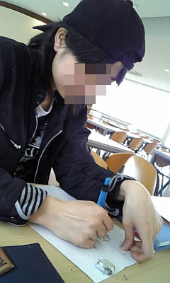 部活勧誘も朝ではなく昼集合なので、のんびり準備してのんびり家を出る。 まあこっちの駅でこれに乗り換えたところで大差ないし、間に合うだろう。 のんびりのんびり。 ・・・・・・あ。 先輩にメールをしよう。 『すみません3分か4分』 『遅刻します』 結局遅刻するオレだった(ダメじゃん) でもジャストで4分遅刻でした(どうでもいい) 予定を確認して、30分後のバスに乗る事に。 それまで部室にてポーカーと大富豪。 ポーカーはフツーに2ペアで勝てたりブタで負けたり。 大富豪は。大富豪3回、最終で貧民1回で終了。 2を3枚持ってたのに、危なそうから2枚出ししたのが間違いだった・・・!! 時間になったので4名バスに乗って移動。 見晴らしのいいガラス張りのホール2階で1回生の様子を伺う。 でもオリエンテーションが始まったばっかりで、まだまだ暇。 落書きでもしよう。 ゴリゴリ。 「・・・でな〜こいつのパソコンなんかホンマにヤバいねん」 「いやいやそんなそんな・・・」 「ほ〜う。それはどこまで信じたらいいわけ?」 「い、いや間違いではない・・・よ??」 「・・・マヂでか」 「俺こういうのに関しては嘘付かへんから」 「・・・ほ〜う?」 ゴリゴリ。 「・・・何してんの」 「・・・」 パシャリ。 「撮ってみた」 「ナンデヤネン」 「あっちこっち送ったんねん」 「こらこら。送られた人が反応に困るでしょうに」 「・・・よし送った」 「あ〜あ」 〜〜♪ 「あ、メールが・・・って!!なんで前におるヤツに送んねん!!」 「え?別にいいやん。あ、そっちも送ったから」 「・・・は?」 「ちょっ・・・!!無駄に画質いいし・・・!!!」 しかも何ですかこの左手(汗) 「よし」 「こら。人の携帯で何してる」 「・・・できた!みんなお揃いっ!!」 「ゴルァそこ待ち受けにすんなああああああああ」 パシャリ。 「よし撮った」 「しかも携帯並べてさらに撮るなあああああああああああ」 な、謎過ぎる。 「あ、雨降って来た」 ズザアアアアアアアアァァァァ・・・・・ 「せ、先輩に電話しよう・・・」 「そうやな・・・」 「・・・もしもし・・・あの、雨風最強なんですが、どうしましょう?」 「屋内での勧誘禁止やし、外じゃ濡れるからチラシ配れへんよな」 「てか絶対勧誘してもこれやと速攻で帰るって・・・」 「・・・はい。分かりました」 「で、どうやって?」 「解散決定ッ♪」 こらそこ。 虚しさ通り越して爽やか笑顔で親指立てるんじゃない(笑) 仕方なく。 「んじゃ俺バスで一回部室帰るわ」 「オレはこっから直で家帰るとしますか」 「は〜い。俺ら4時からシスアド用の講義あるから」 「ありゃま。ご苦労様」 「ばいば〜い」 「お〜っす」 そして勧誘もろくに出来ずまた今日が終わっていく・・・(汗) PR 2008.04.09 Wed 23:59:29 充実健康診断。