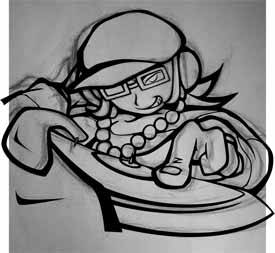 作画過程バトン ■回してくれた人の画風はどんな感じですか? ほわほわしてる感じ・・・かな。主線細いし描くのも早いしで憧れます。 オレなんかゴリゴリのグシグシの図太い主線で、 着色完了まで6時間とかいう真逆の人間ですし(汗) ■よく使う画材は? 何よりもシャーペンと消しゴム。 次によく使うのは0.3のミリペン。 たまに色鉛筆で着色。稀にコピックも使う。ちなみにコピックはチャオ。 パソコンならソフトはフォトショかイラレ。そしてペンタブ。 用紙は最近は無地のルーズリーフかコピー用紙。両方B5。 でも昔からよく使っていて一番数の多いものはB5のレポート用紙の8分の1サイズ。 丁度手のひらで隠れる上、オレが一番描きやすいサイズ。 授業中に落書きしてて見つかりそうになったら隠せるし(おい)、 細かい部分に多少ごまかしが効く上、シャーペンで影などを付ける際にぼかしが効きやすい。 が、最近は大学の教室が広いのでやりたい放題(こら) でも感覚に狂いが出てきているためそろそろB5の8分の1サイズに戻りたいところ。 ■では作画過程を教えてください。 シャーペンゴリゴリオンリーが主流。主線も影もシャーペン。 もしそのまま色を付けるなら色鉛筆でグリグリ。 パソコンで編集したりコピックを使うなら0.3のミリペンを太い主線に乱用。 パソコンで編集する時は携帯で下書きを撮影してメールでパソコンに送信。 最近はイラレで写真をライブトレースしたあと、パスを編集して主線を作る。 イラレが分からなかった当初はフォトショで画像解像度を倍以上に上げ、 別のレイヤーに鉛筆ツールで地道にグリグリ主線を描いていた。 着色はイラレならライブペイントで下地の色を決めたあと拡張、 主線と色でレイヤーを分けてペンツールで影などをつける。 フォトショでベタ塗りする場合はベースの色を塗りつぶしで着色したあと、 影やハイライト部分の境目に塗る色で鉛筆ツールを使って線を引き、さらに塗りつぶし。 フォトショで水彩系ならベース色を塗りつぶした後、 少し不透明度を下げた適度に細いブラシツールで影やハイライトをつけ、 気になれば明度や彩度の調整をする。気が向くとフィルタも使う。 背景や文字は主が出来てから描いたり入れたりする。 イラレだと最後にパス全体を縮小して適度な大きさにし、 そのデータをフォトショで開いて適当なファイル形式で保存する。 フォトショだと最後に解像度を適度な大きさまで下げて保存。 ■次に回す5人 これを見てしまった絵描きさん(え) スルー可。 |