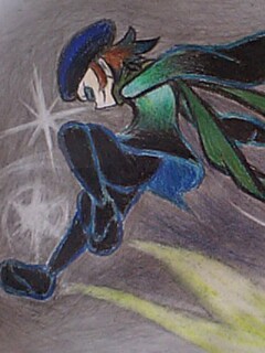 アントラ聞きながら。 そしたらノッちゃってさ。 ノリのまま疲れたし脱線してゴリゴリ・・・ 6時間ほどゴリゴリして、より一層疲れてその後ボケエエェ・・・(おい) 最初はまたシャーペンでゴリゴリしてグラデーションしようかと思ったけど、 せっかくだし姐に借りたままの大量の色鉛筆を使ったため、 いつもの色鉛筆画より綺麗に色が塗れた。 というか色鉛筆のベタ塗りが可能になった・・・?(謎) そりゃあ前にキリリクのティアを描いた時に使った色鉛筆は12色で、 失礼ながら今回それの6倍だし?(爆) でも蛍光系の色も使ったから、写真じゃわからんね。うん。 足から延びてる黄色の線はモロに蛍光の黄色だけど。 何気に一番苦労したのはバックの黒だったりする。 普通の鉛筆を乱用。グリグリ。おててまっくろ(笑) ああぁ体勢に無理させすぎたのだけ心残り・・・(泣) |
